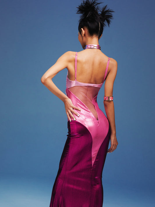 SENSHI CROSS HALTER DRESS FUCHSIA