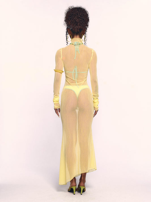 MLGL BEACH TAN SEE THROUGH DRESS LEMON