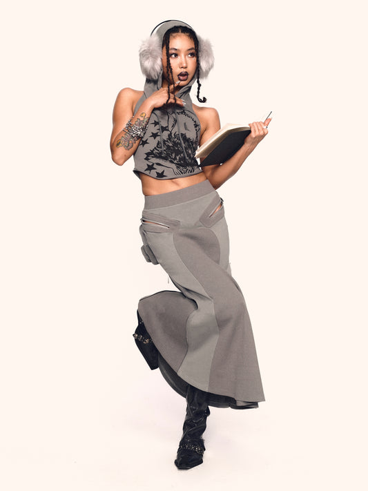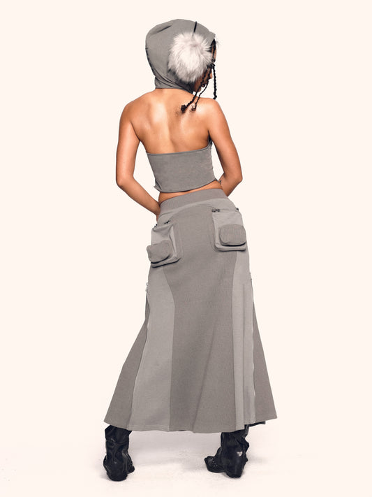 MLGL ZIP POCKET MAXI SKIRT GREY